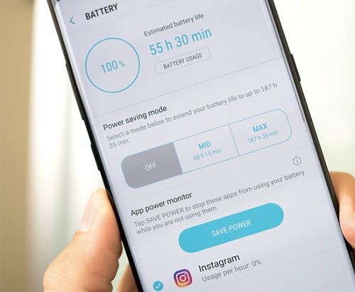 - Các đơn giản để tiết kiệm pin đó chính là bật chế độ tiết kiệm pin. Đối với Samsung Galaxy S9 Plus, bạn có hai chế độ tiết kiệm pin là Mid (Trung bình) và Max (Tối đa). Khi bạn áp dụng từng chế độ tiết kiệm khác nhau sẽ cho cửa sổ bật lên hiển thị tất cả các cài đặt khác nhau.