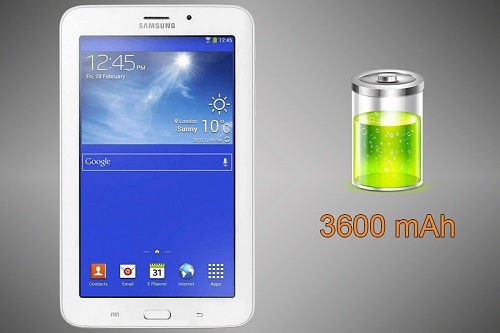 Dung lượng pin chỉ 3600 mAh, khá yếu so với màn hình lớn của máy, nhưng chế độ siêu tiết kiệm pin giúp Galaxy Tab 3V giảm lượng tiêu thụ điện năng bằng cách tắt bớt các ứng dụng không cần thiết, đảm bảo máy vẫn hoạt động khi bạn cần đến nó. Sự hiện diện của vi xử lý lõi tứ xung nhịp 1.30GHz và dung lượng RAM 1GB mang đến cho Galaxy Tab 3V một hiệu năng mạnh mẽ, cho phép máy đáp ứng tốt mọi yêu cầu tác vụ của người dùng. Từ việc đọc sách, lướt web, xem video, chơi game… đến việc thực thi đa nhiệm, chiếc máy tính bảng này sẽ luôn làm bạn hài lòng.
